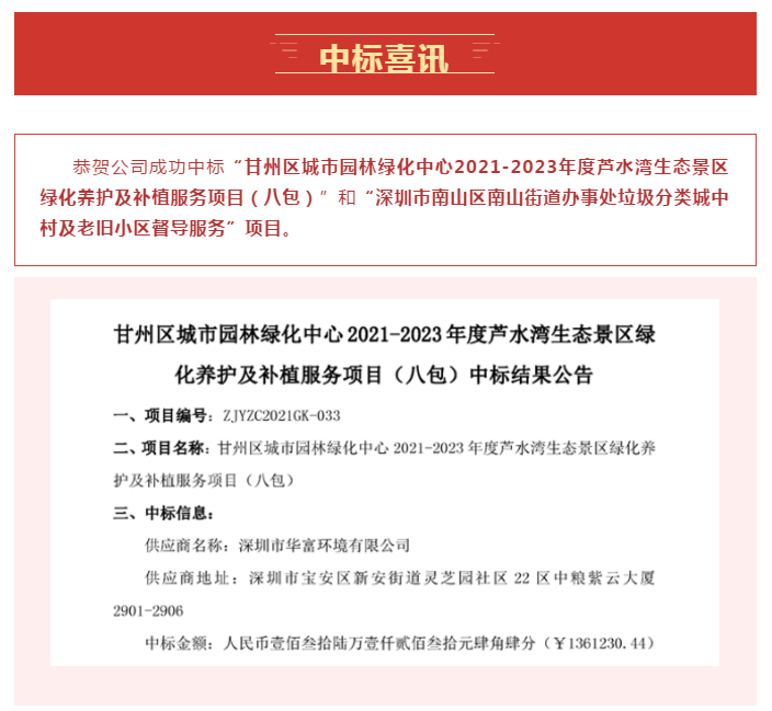 中标喜讯 | 华富环境喜迎新突破,一路“标”升