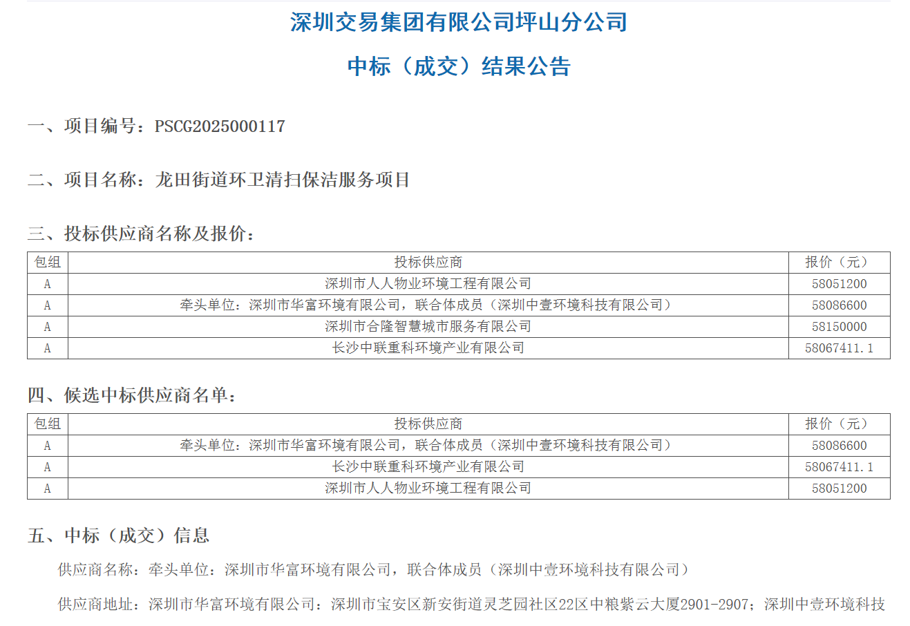 热烈庆贺深圳市华富环境有限公司(联合深圳中壹环境科技有限公司),在龙田街道环卫清扫保洁服务项目重新招标中,凭借专业实力与口碑,再度成功中标!这是市场与客户对我们环卫服务品质的又一次高度认可,也赋予我们持续守护龙田街道洁净环境的新使命。