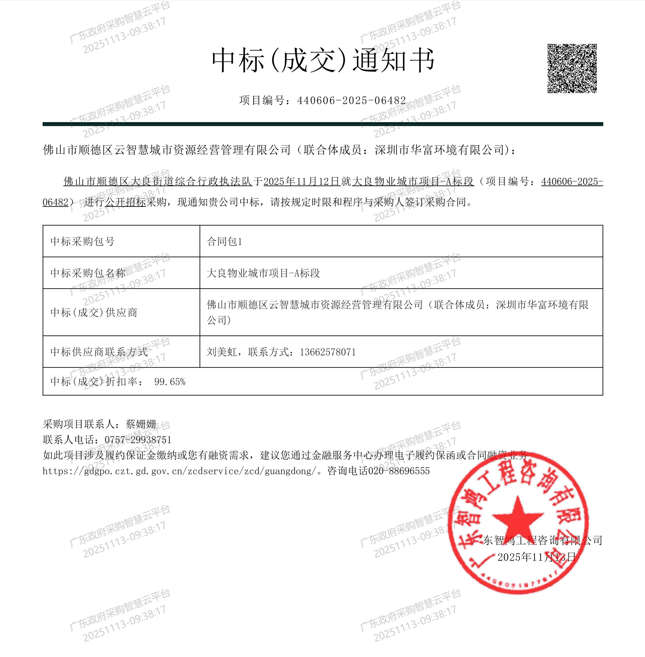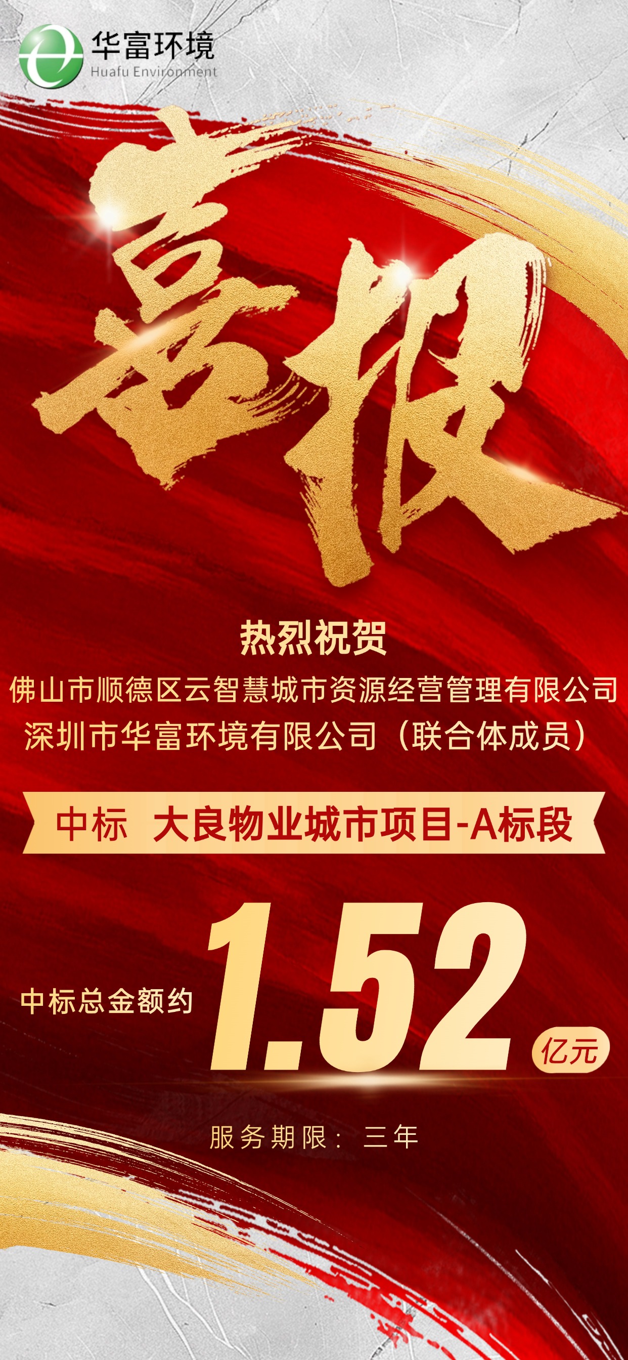 近日,佛山市顺德区大良物业城市项目采购结果揭晓——深圳市华富环境有限公司与佛山市顺德区云智慧城市资源经营管理有限公司组成联合体,凭借专业运营积淀与本地资源优势的协同发力,成功斩获该项目A标段1.52亿元订单。