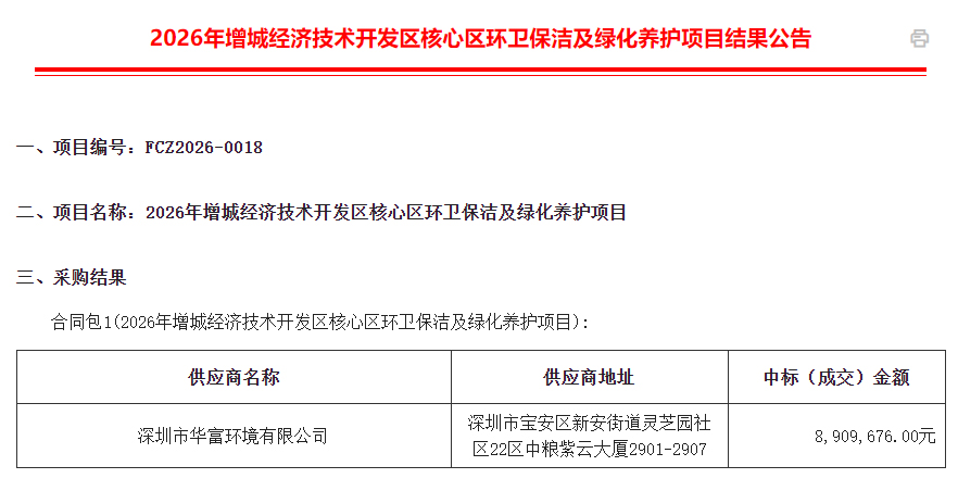 ● 再赴增城之约!全新中标2026年增城经济技术开发区核心区环卫保洁及绿化养护项目。续写与这座城市的深厚情谊,用持续可靠的服务实力,筑牢在华南区域的品牌根基。